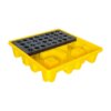 Pallet plástico antiderrame fabricado para retención de líquidos de tambores, bidones, baldes e IBC, con capacidad para contener liquidos hasta 250 litros.